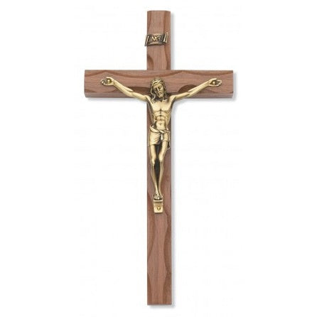10" Carved Walnut Crucifix Gold