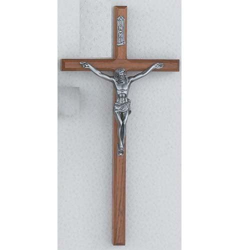 Enhance your spiritual space with our 10-inch Beveled Walnut Crucifix. Crafted from rich walnut wood, this exquisite piece features a detailed silver corpus, symbolizing Christ's ultimate sacrifice. Its elegant bevel design adds a touch of sophistication, making it a beautiful focal point for any home or church setting.