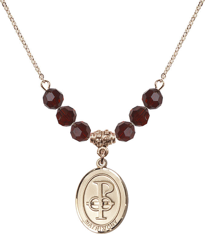 Gold-Plated Necklace with 4mm Garnet Crystal Beads & 14K-Filled Matrimony Medal