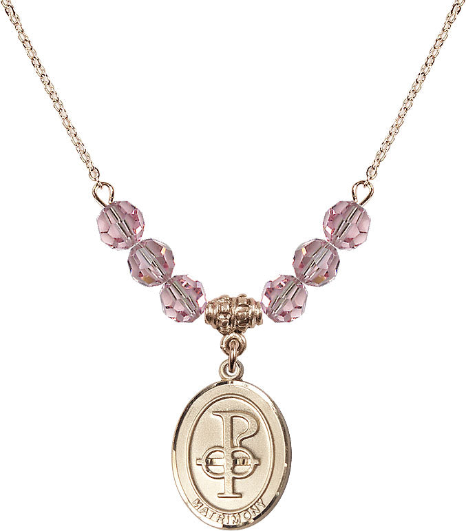Gold-Plated Necklace with 4mm Light Rose Crystal Beads & 14K-Filled Matrimony Medal