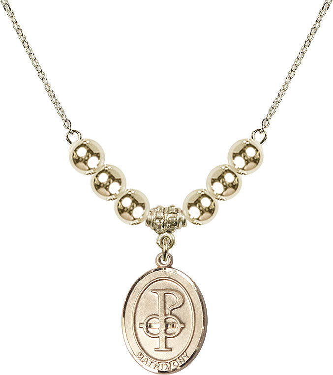 Gold-Plated Necklace with 6mm 14kt Gold Filled Beads & 14K-Filled Matrimony Medal