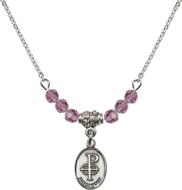Our 18" Rhodium Plated Necklace with 4mm Light Amethyst Crystal Beads featuring a Sterling Silver Matrimony Medal. is proudly manufactured in the USA.