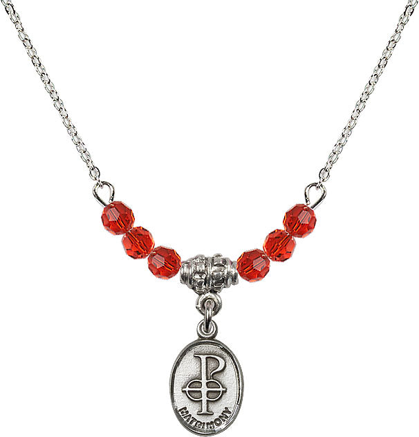 Our 18" Rhodium Plated Necklace with 4mm Ruby Crystal Beads featuring a Sterling Silver Matrimony Medal. is proudly manufactured in the USA.