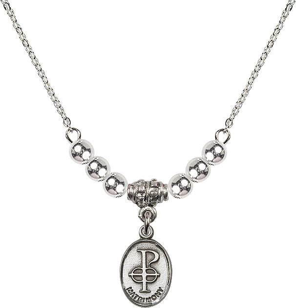 Our 18" Rhodium Plated Necklace with 4mm Sterling Silver Beads featuring a Sterling Silver Matrimony Medal. is proudly manufactured in the USA.