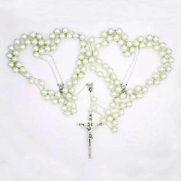 Large Imitation Pearl and Silver-tone Wedding Lasso Rosary