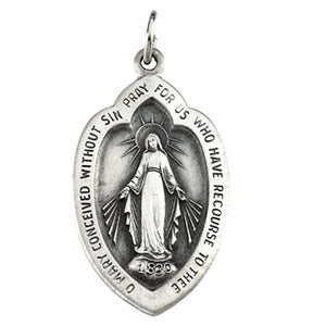 14K White Gold Round Miraculous Medal Pendant