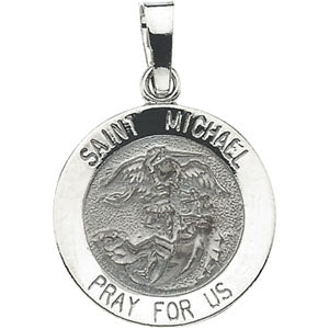 14K White Gold Round Hollow St. Michael Pendant