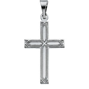 14K White Gold Cross Pendant with Design