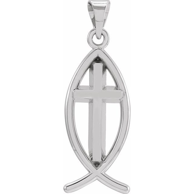 This Fish with Cross Pendant measures 17 X 8 millimeters, approximately 3/4-inch by 3/8-inch.