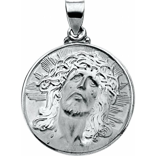 This Hollow Face Of Jesus Pendant available from Catholic Shop.com features dimensions of 23.25 X 23.50 millimeters, approximately 1-inch by 1-inch.