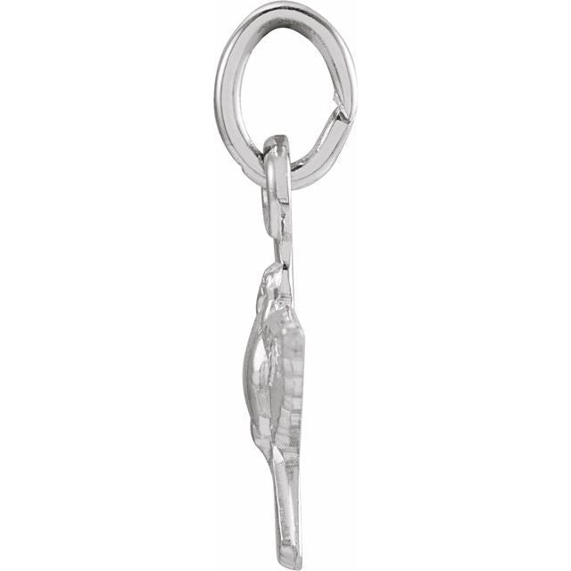 This Holy Spirit Pendant measures 12 X 18 millimeters, approximately 1/2-inch by 3/4-inch.