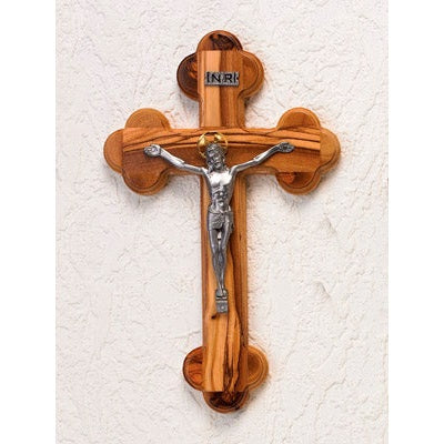 This 10-inch Olive Wood 14-Station Crucifix - Silver Tone Corpus - Gold Tone Halo - Silver Tone INRI features our satisfaction guarantee. Imported from Italy.