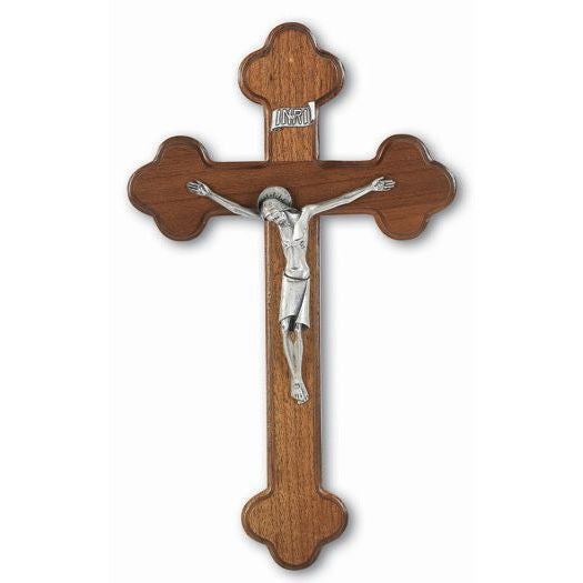 10" Walnut Cross with Silver Corpus is a stunning representation of faith, beautifully crafted for your home or prayer space. Made from rich walnut wood and adorned with an antique silver-plated Cipolletti corpus, this cross serves as a daily reminder of Christ's ultimate sacrifice for humanity. Measuring 10 inches, it fits perfectly on a wall or mantel, inviting reflection and prayer into your everyday life.