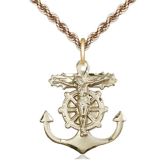 14kt Gold Anchor Crucifix Medal | Large