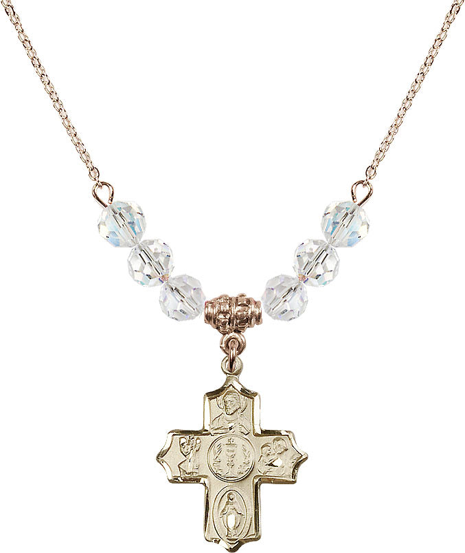 Gold-Plated Necklace with 4mm Crystal Beads & 14K-Filled 4-Way Medal