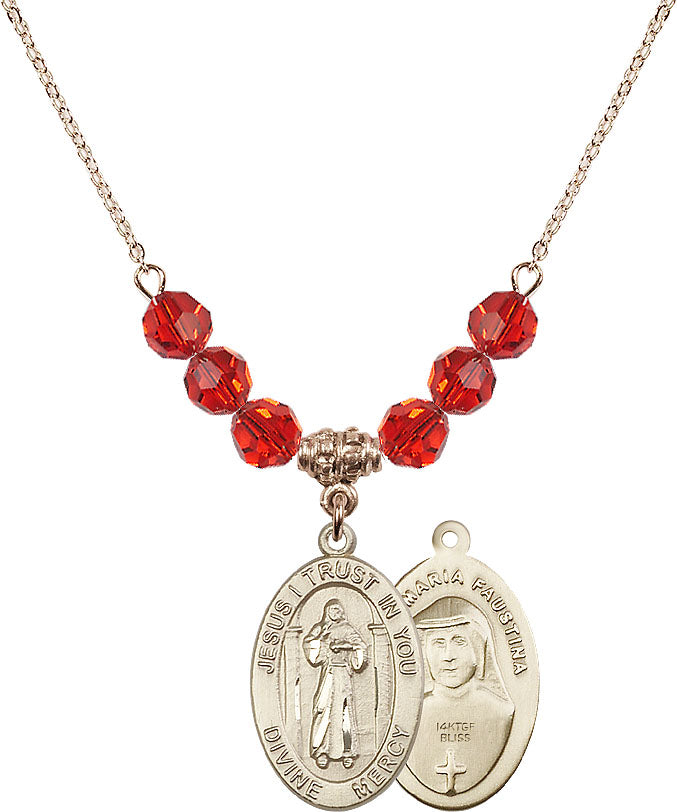 Gold-Plated Necklace with 4mm Ruby Crystal Beads & 14K-Filled Divine Mercy Medal