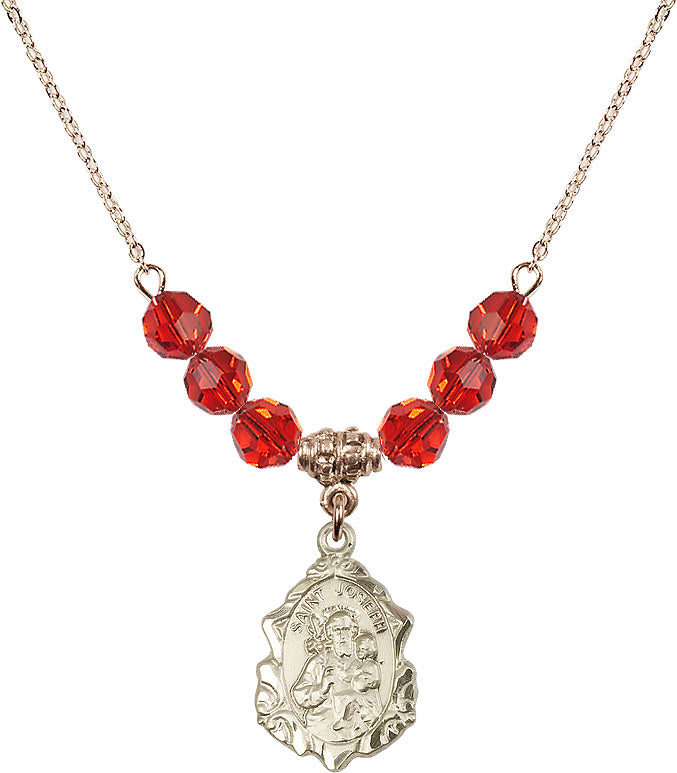 18" Plated Necklace with 4mm Ruby Crystal Beads & 14K-Filled St. Joseph Medal | Engravable