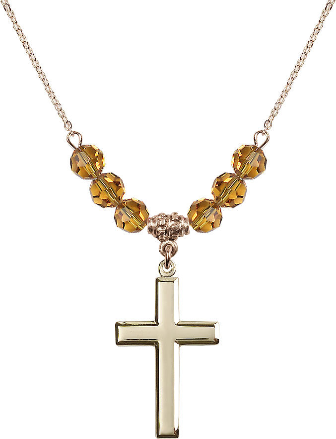 Gold-Plated Necklace with 4mm Topaz Crystal Beads & 14K-Filled Cross Medal