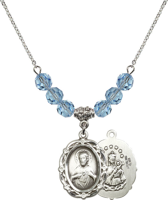 Our 18" Rhodium Plated Necklace with 4mm Aqua Crystal Beads featuring a Sterling Silver Scapular Medal. is proudly manufactured in the USA.