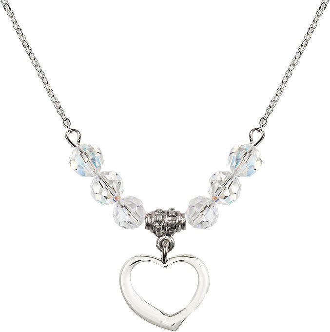 Our 18" Rhodium Plated Necklace with 4mm Crystal Beads featuring a Sterling Silver Heart Medal. is proudly manufactured in the USA.