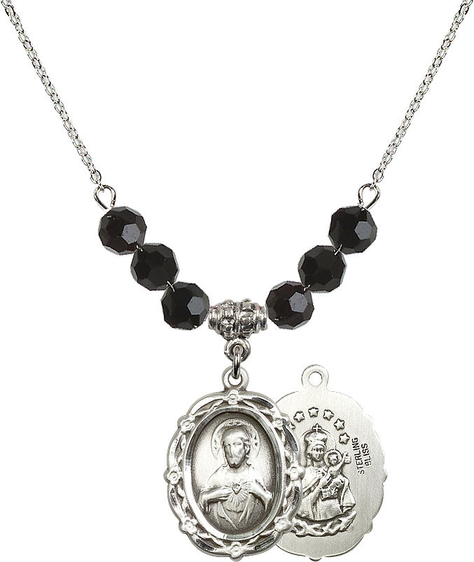 Necklace with 4mm Jet Crystal Beads & Sterling Scapular Medal