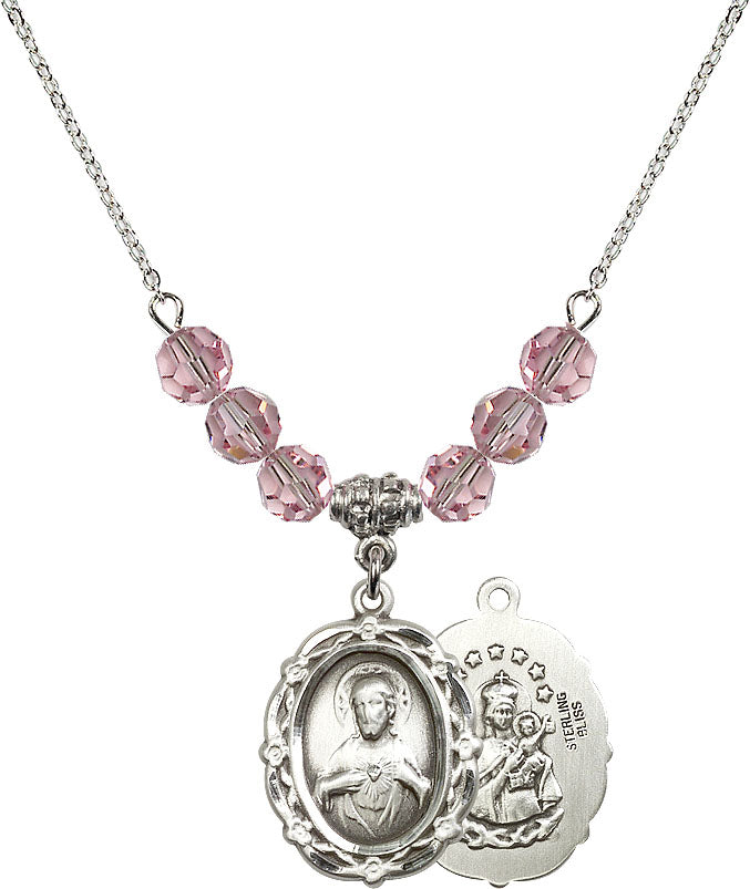 Our 18" Rhodium Plated Necklace with 4mm Light Rose Crystal Beads featuring a Sterling Silver Scapular Medal. is proudly manufactured in the USA.