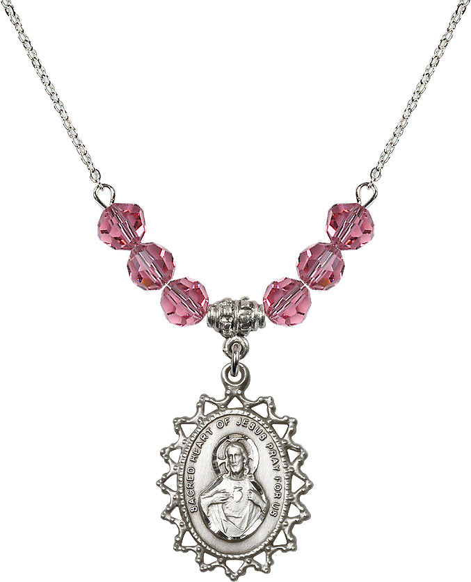 Necklace with 4mm Rose Crystal Beads & Sterling Scapular Medal