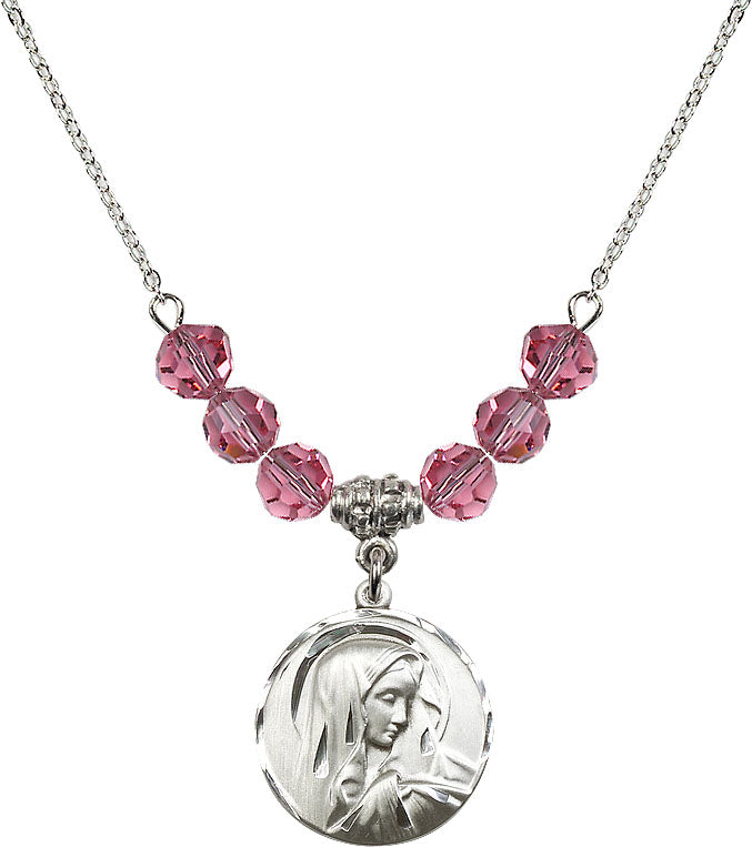Necklace with 4mm Rose Crystal Beads & Sterling Sorrowful Mother Medal