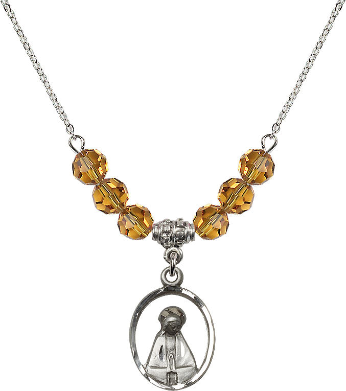 Necklace with 4mm Topaz Crystal Beads & Sterling Madonna Medal