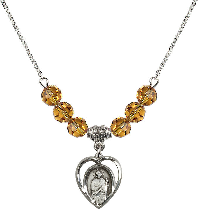 Necklace with 4mm Topaz Crystal Beads & Sterling Silver St. Jude Medal