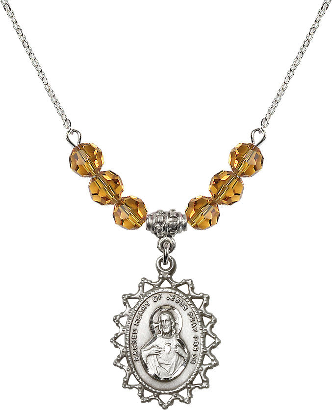 Necklace with 4mm Topaz Crystal Beads & Sterling Scapular Medal
