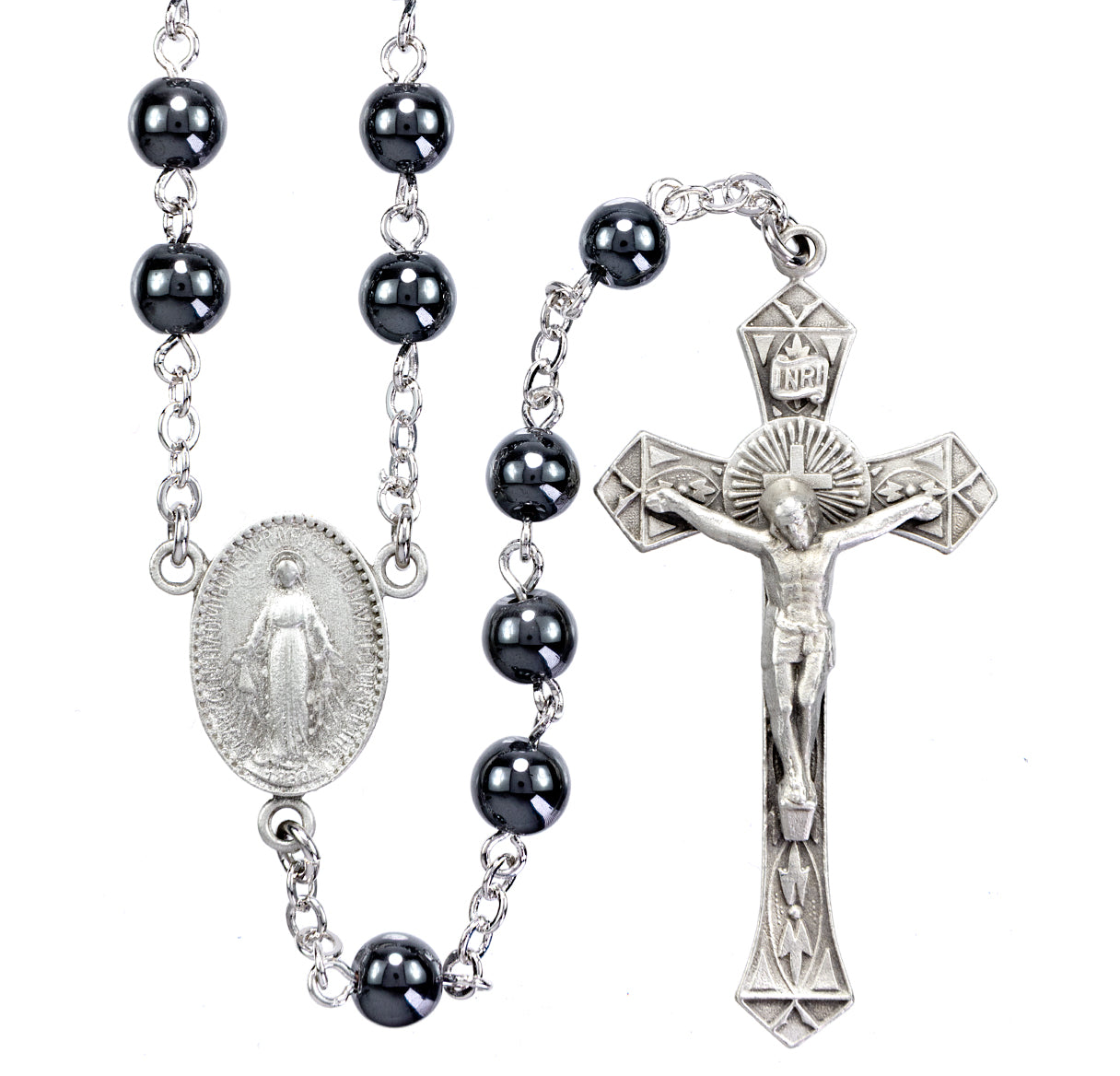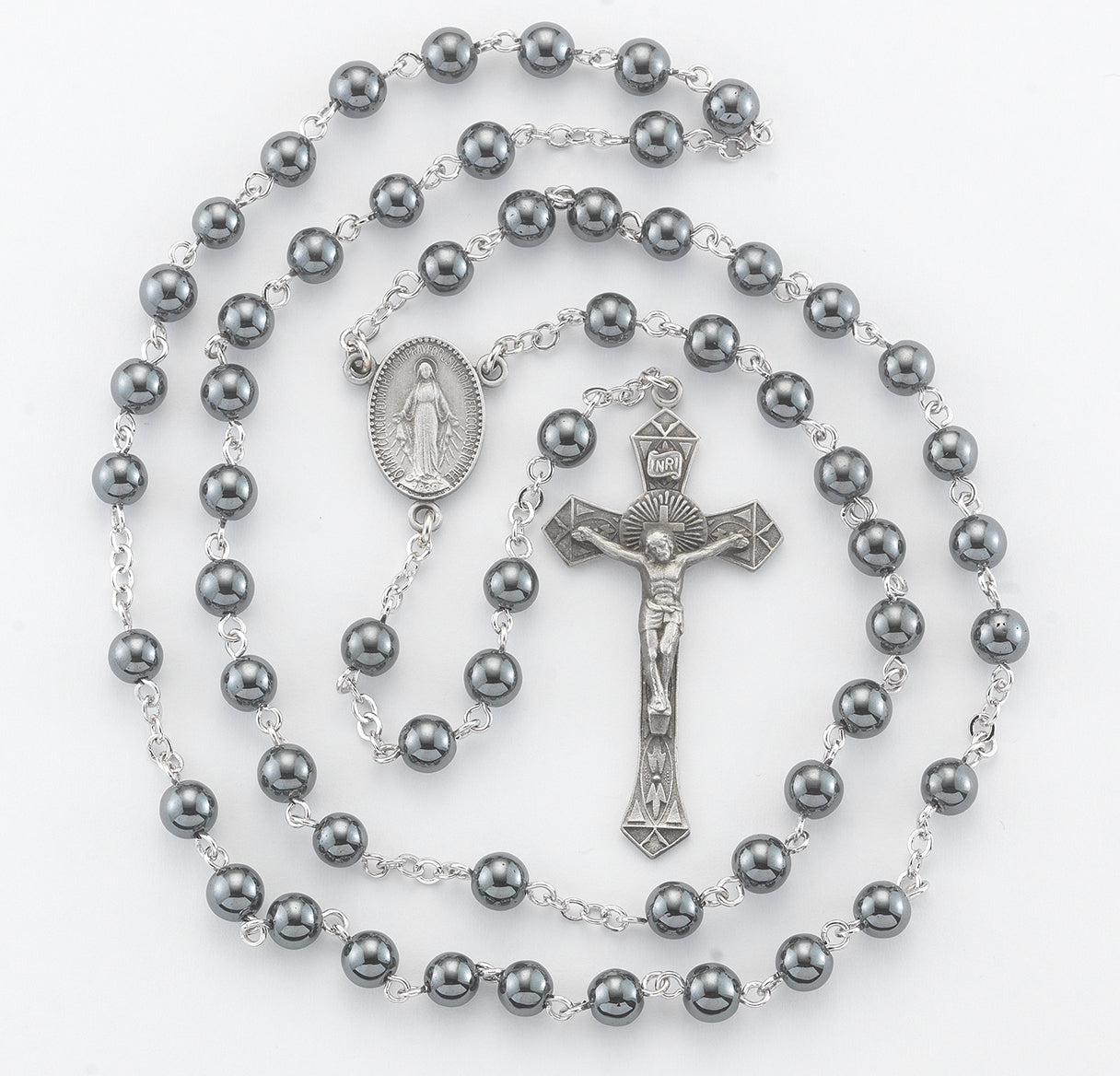 6mm Hematite Bead with New England Pewter Crucifix and Center