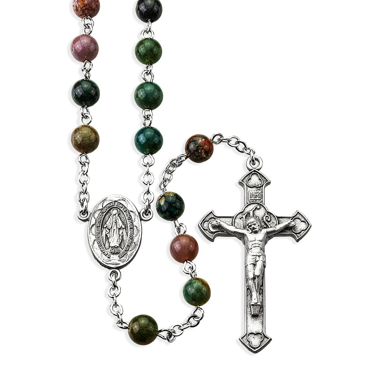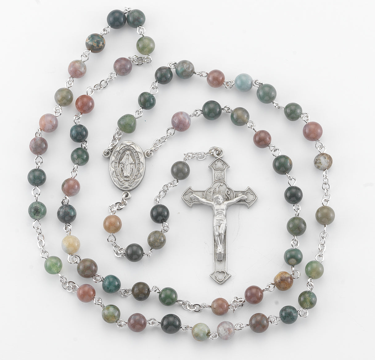6mm India Agate Gemstone Bead Rosary made with Genuine Pewter Crucifix and Center