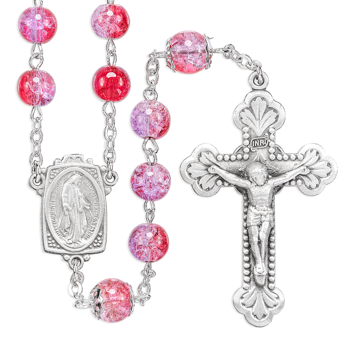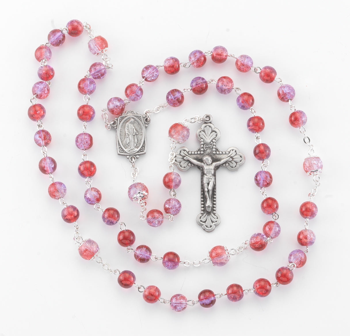 6mm Ruby Amethyst Crackle Glass Bead with New England Pewter Crucifix and Center