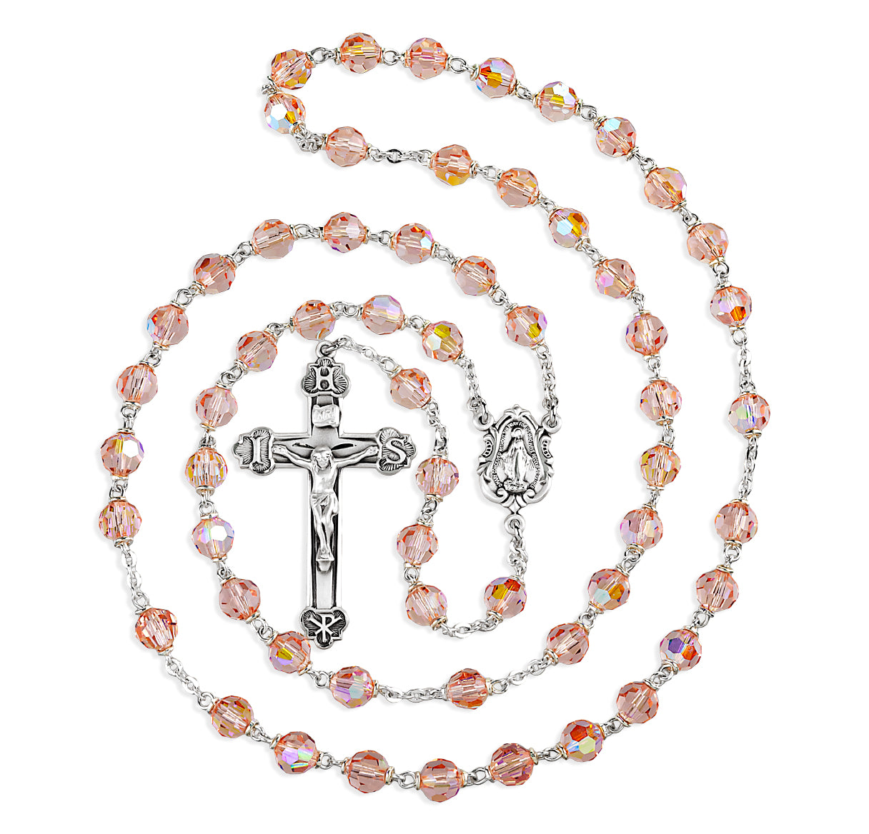 - 6mm Tin Cut Light Rose Crystal Czech Aurora Beads.