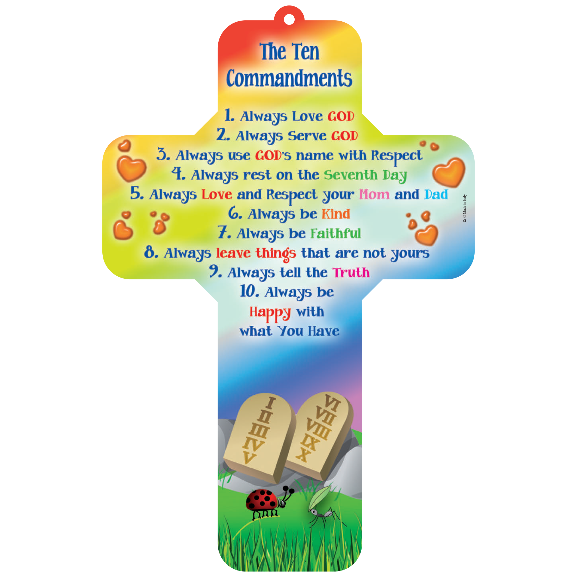 This distinctive 7-inch wall cross beautifully displays the Ten Commandments, offering a meaningful reminder of God's law in your home, office, or classroom. Crafted by Lumen Mundi, this decorative plaque features clear, reverent text that makes the commandments easy to read and reflect upon daily.