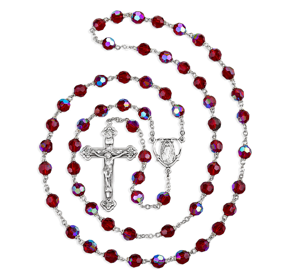 - 7mm Ruby Crystal Czech Aurora Beads.