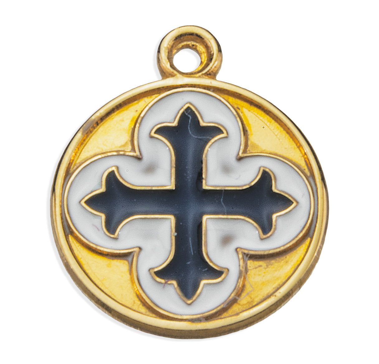 Gold Over Sterling Silver Cross on ClOver with Blue and White Epoxy