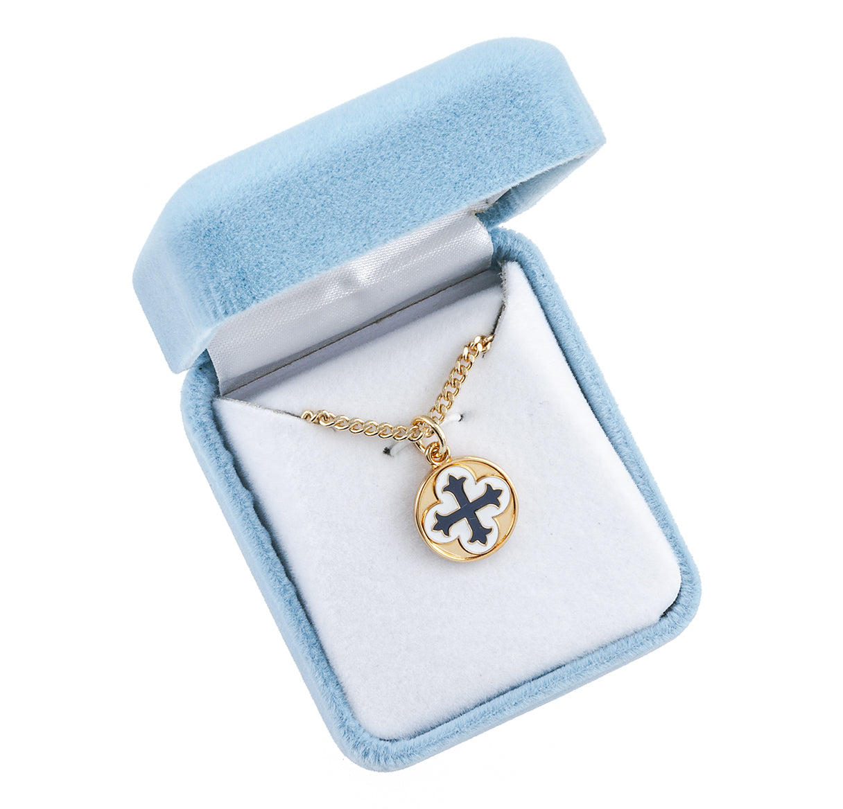 - Round Pendant with blue and white Epoxy Clover Cross