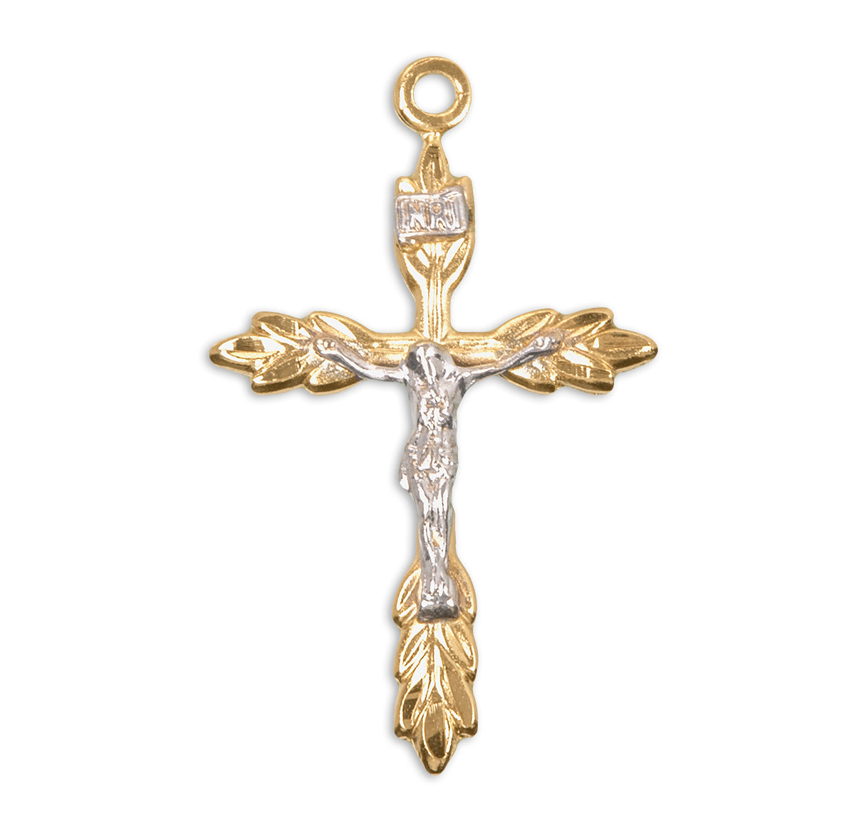 Gold Over Sterling Silver Two Tone Wheat Crucifix