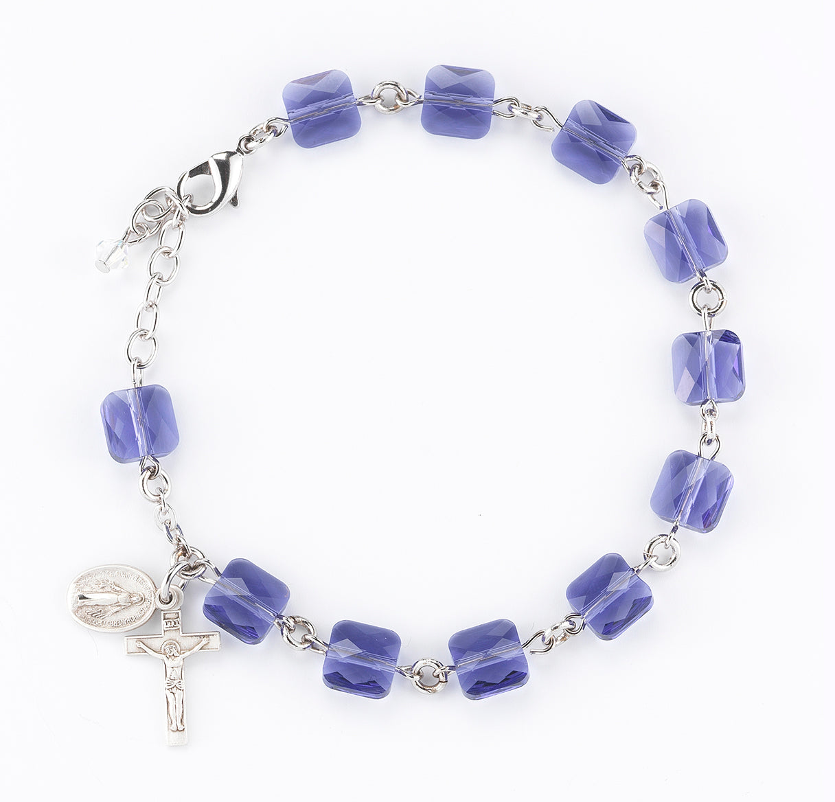 Rosary Bracelet with 8mm Tanzanite Finest Austrian Crystal Multi-Facted Square Beads