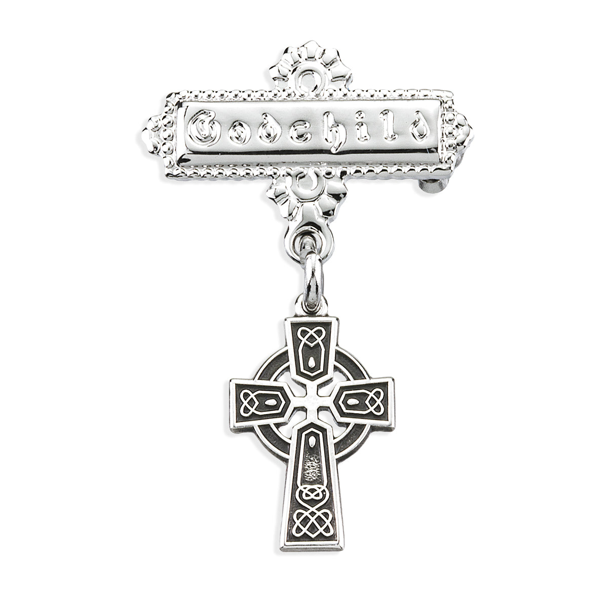 Sterling Silver Baby Irish Celtic cross on a Godchild Bar Pin