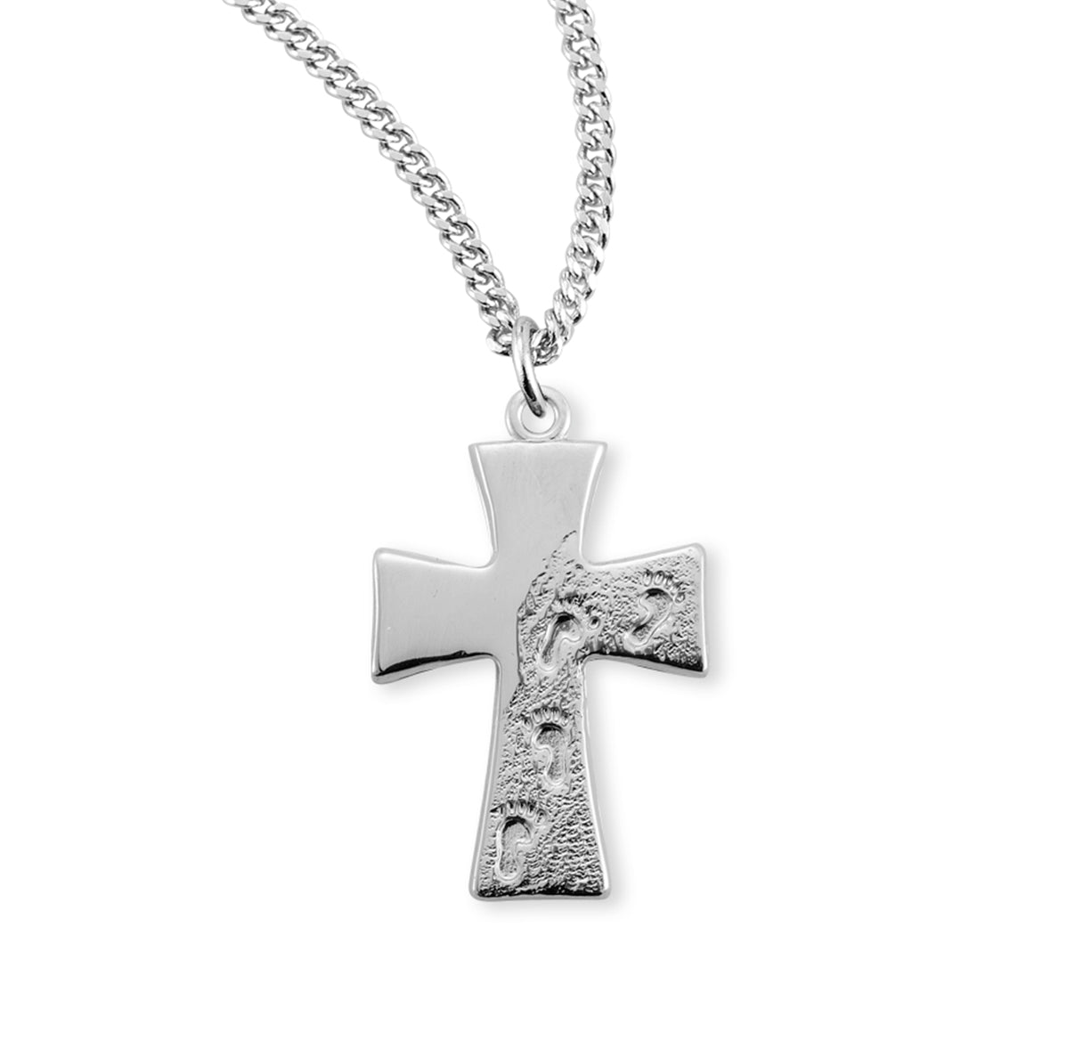Sterling Silver Footprints in the Sand Cross