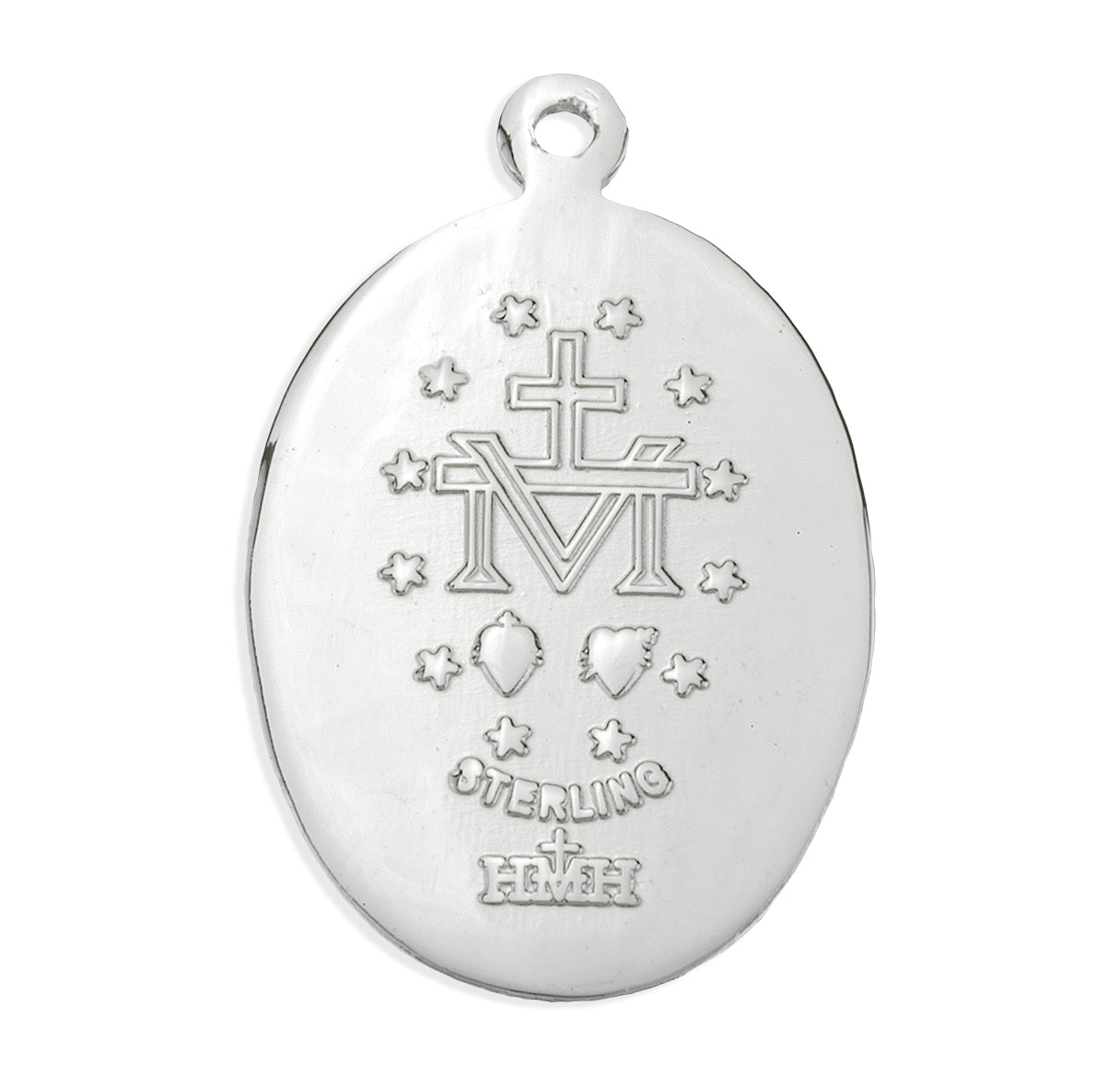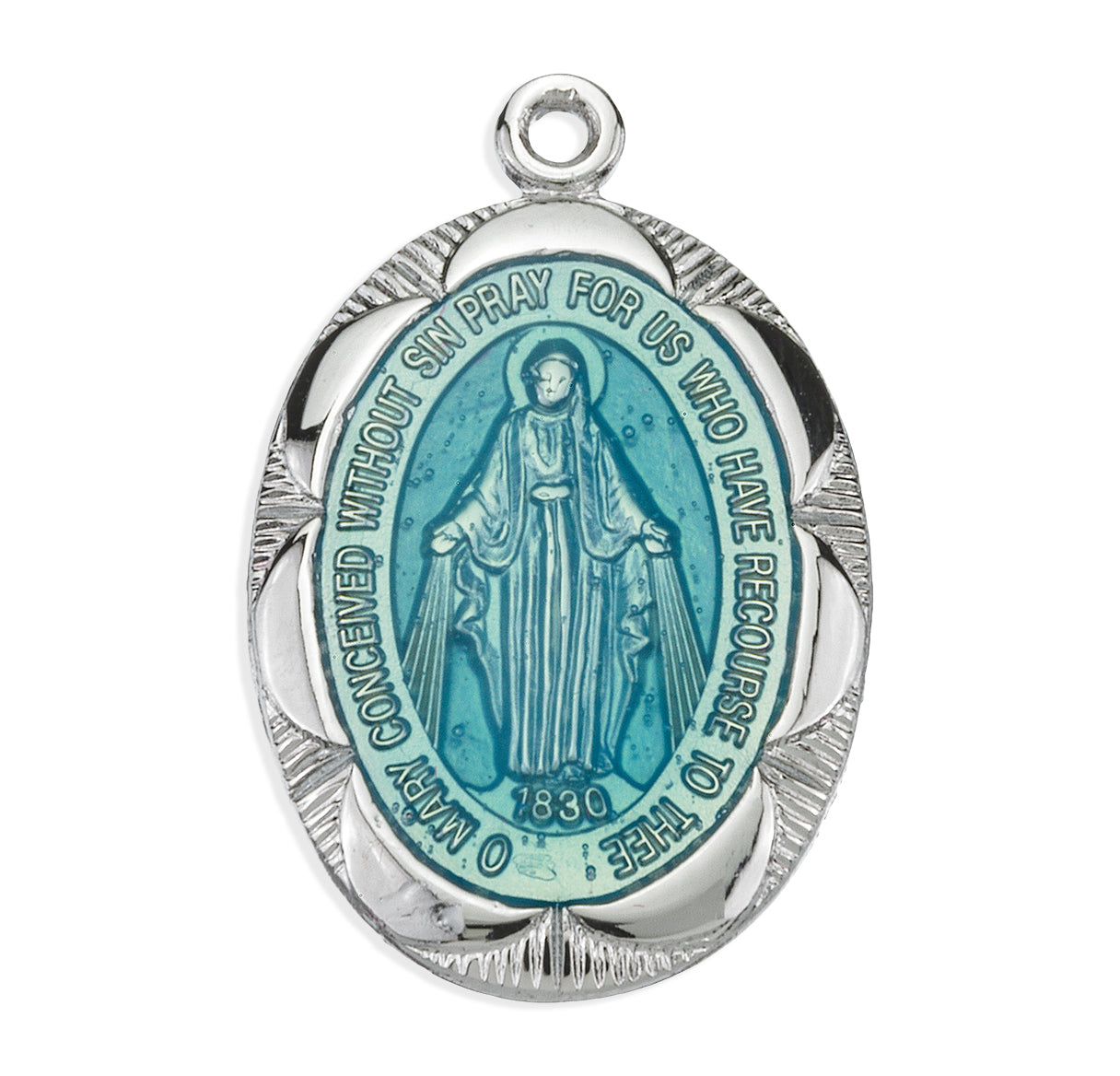 Sterling Silver Oval Blue Enameled Fancy Edge Miraculous Medal