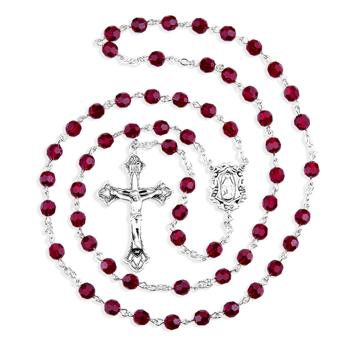 Sterling Silver Rosary Hand Made with finest Austrian Crystal 6mm Ruby Faceted Round Beads