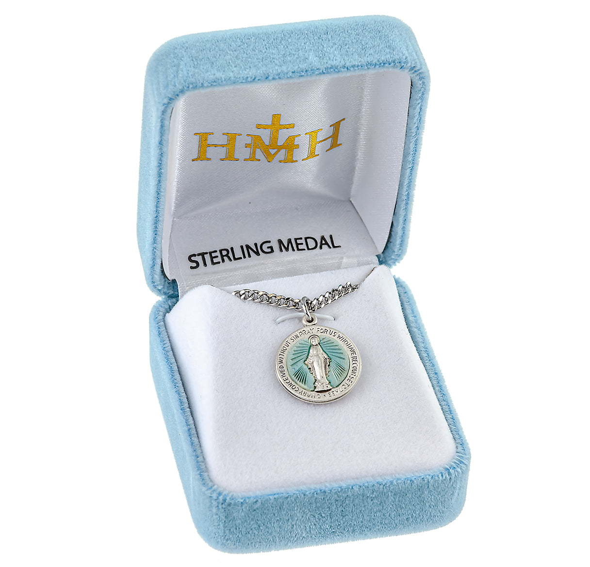 Sterling Silver Round Blue Miraculous Medal