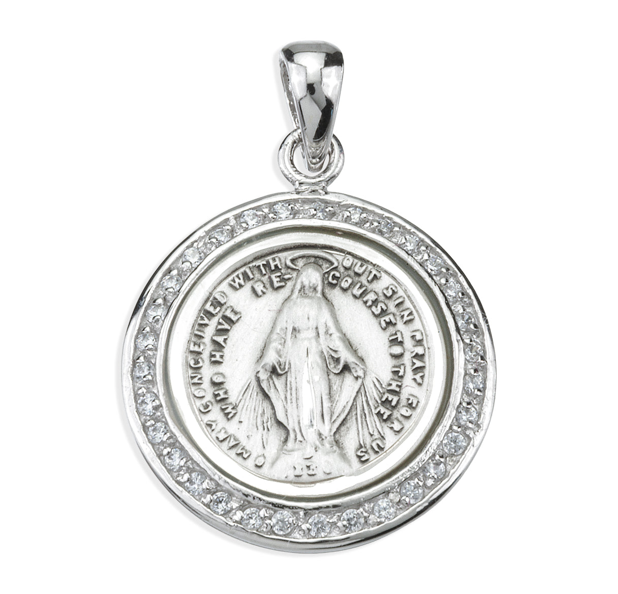 Sterling Silver Round Miraculous Crystal Cubic Zirconia "CZ's" Pendant